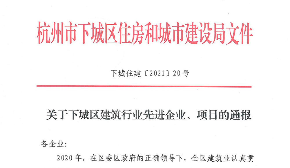 集团荣膺“2020年度下城区建筑行业先进企业”