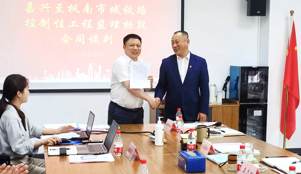 董事长参加嘉兴至枫南市域铁路控制性节点工程(嘉兴南站) 监理合同谈判会