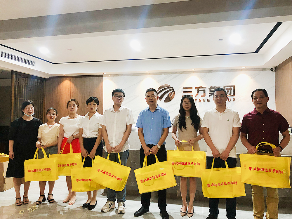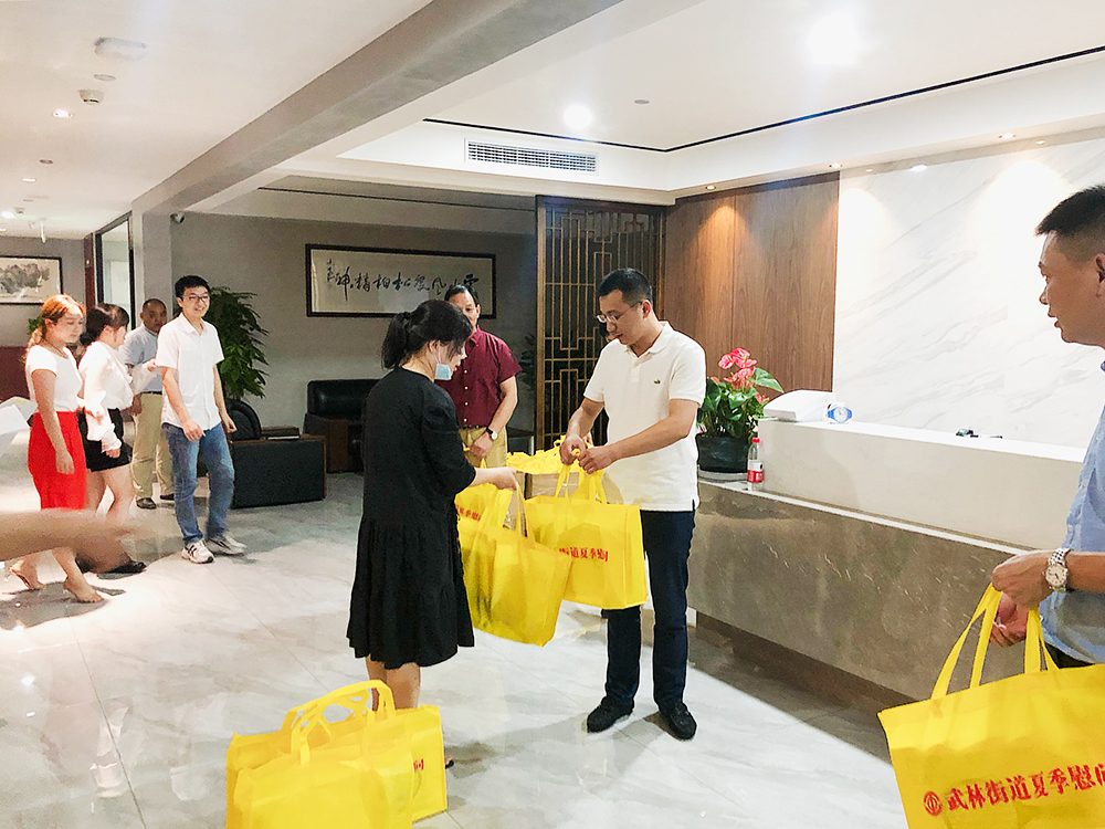 下城区武林街道总工会对于新成立的三方工会给予了高度的关心和重视。8月12日上午,杭州下城区武林街道工会孙珏一行人员莅临集团总部,在集团工会主席潘晓倩、综合办主任魏莎的带领下参观办公区域,对各部门员工进行高温慰问。在发放高温慰问品的同时,他们还叮嘱企业要切实关心好、爱护好坚守在高温第一线的员工,提前部署高温情况下的岗位安排,做到及时换岗、合理休息,避免员工出现疲劳、中暑等突发情况,结合实际做好防暑降温工作。