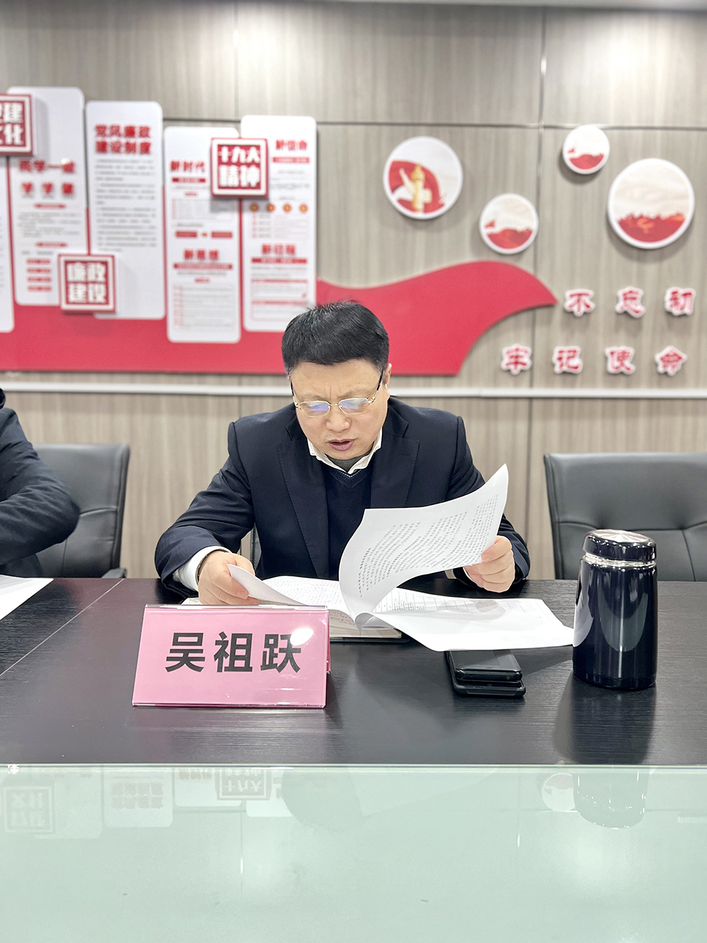 随后,支部纪检委员、集团董事长吴祖跃作支部2021年终总结。吴祖跃报告了支部上一年度工作情况,提出存在的缺点与不足,明确了2022年工作思路和举措。