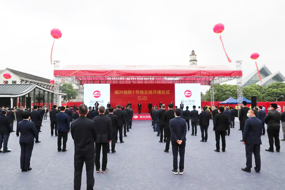 4月29日上午,绍兴地铁 1 号线主线开通运营仪式在绍兴地铁城市广场站举行。绍兴市委副书记、市长施惠芳宣布开通运营。绍兴市领导谭志桂、魏伟、杜旭亮、陶关锋、陈伟军、徐泳出席开通仪式,集团绍兴地铁1号线车站公共区装修工程项目总监季康忠参加。