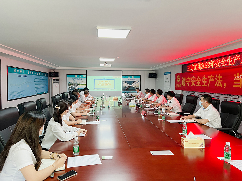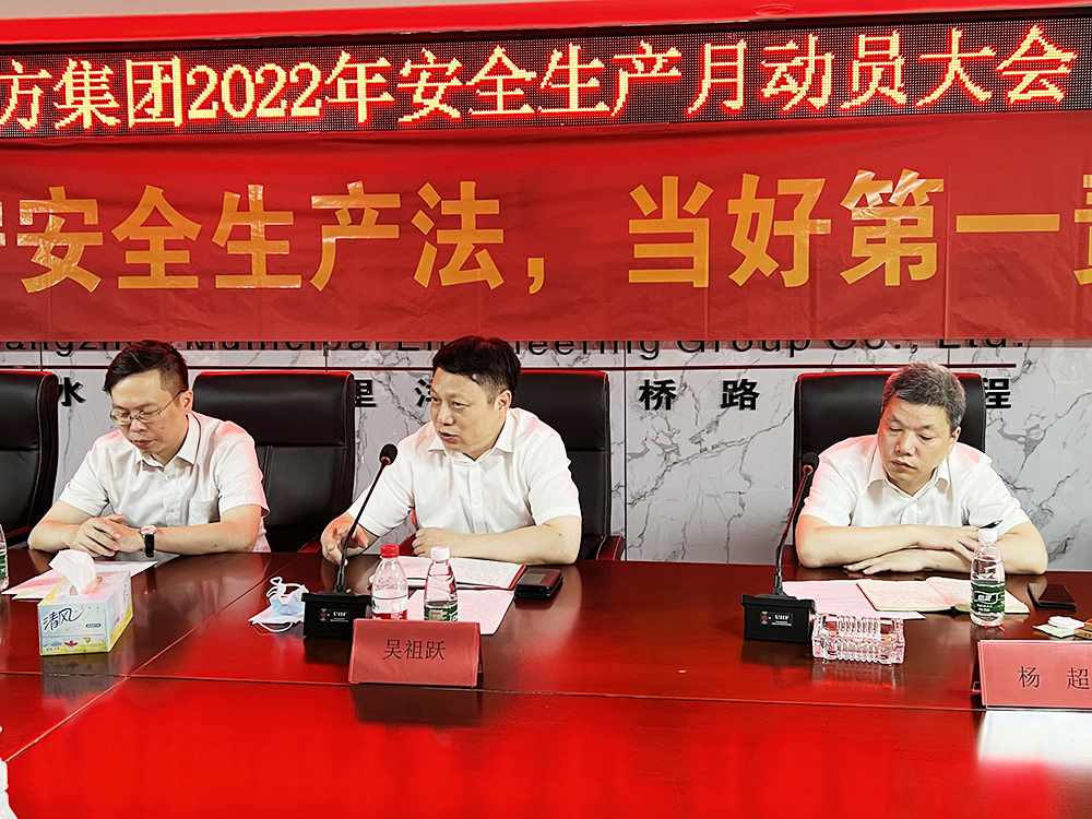 6月8日下午,集团在丽水路(三里洋路-康桥路)项目部会议室召开安全生产月动员大会,集团董事长吴祖跃、副总裁郑燊、杨超,总工王鹏飞、机关部门负责人、杭州项目负责人等20余人参加,会议由副总裁杨超主持。