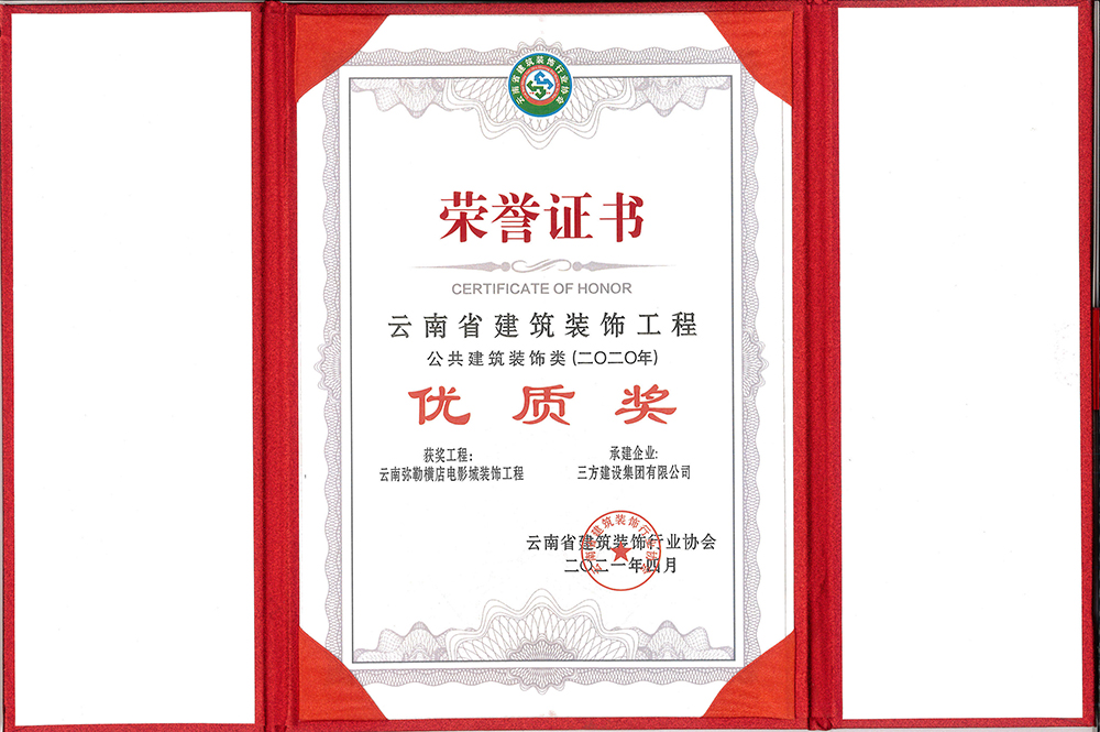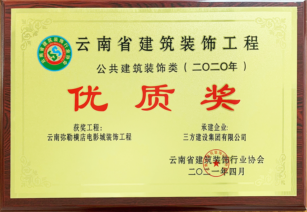 4月30日,从云南省建筑装饰行业协会举办的2020年装饰工程奖颁奖大会传来喜讯,由我集团装饰公司承建的云南弥勒横店电影城装饰工程荣获“2020年度云南省建筑装饰工程公共建筑装饰类优质奖”。