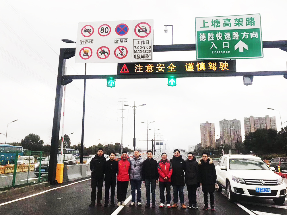 本工程于2017年10月开工,2018年3月开始上塘高架封道施工,2018年12月高架主线全部建成。在此期间上级主管部门、集团领导一直给予高度关注。各参建单位认真落实上级主管部门对项目建设的要求,精心组织,科学施工,优质高效推进工程建设。14个月的建设工期,将难点一一突破,最终保质保量完成工程节点任务。