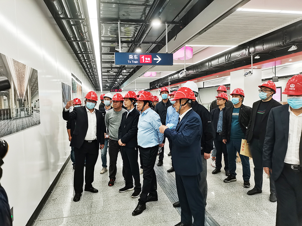 11月3日11时30许,绍兴市委副书记陈澄率队调研绍兴城市轨道交通1号线凤林站装修施工现场。市委副秘书长徐建璋,市轨道交通集团党委书记、董事长赵定国及相关领导,京越公司党委书记、总经理孙河川,副总经理华东及相关领导,我集团绍兴轨道工程指挥部负责人郑权、总监季康忠,总包单位北京市政路桥公司项目经理卢贺等陪同调研。