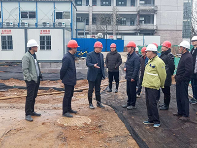 赵院长一行先视察了教学楼、行政楼主体结构质量及安全文明施工情况,随后又到图书馆汽车坡道对防水工程及土方回填进行详细的咨询。