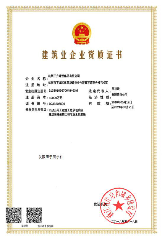 热烈庆祝集团取得建筑装修装饰专业承包一级施工资质