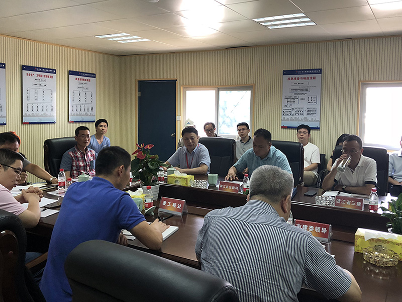 2018年6月1日上午9:30,杭州市住建委裘新谷副主任率委市场处、工程处、造价处、质安总站、建管站主要负责人及西湖区、上城区、滨江区住建局主要领导,在我集团监理的杭政储出(2011)61号地块(烟草大厦)召开“杭州市建设工程现场人员实名制管理和防欠薪工作调研座谈会”。