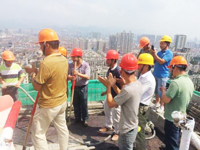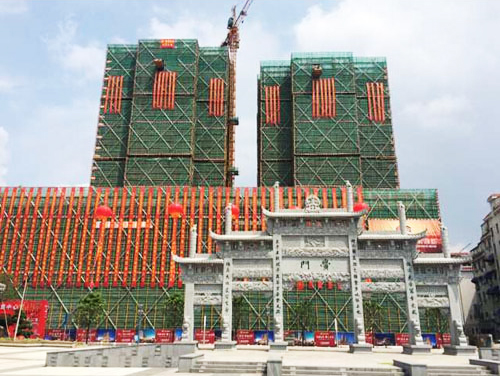 2015年9月10日上午10点20分,东阳市黉门商厦举行结构结顶仪式。 新光集团万夏房产总部相关负责人员、 集团东阳分公司相关负责人、新东阳建设集团项目负责人参加了本次的结顶仪式。