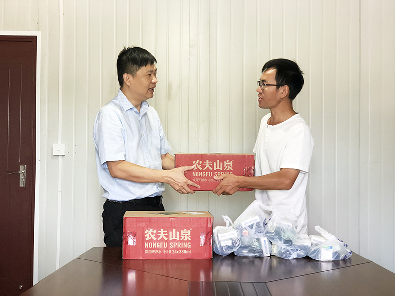 入伏以来,杭州持续晴热高温,暑气灼人。为确保集团员工安全、健康和企业生产正常进行,7月24日起,由集团工程部牵头,董事长吴祖跃、总裁夏少云一行深入各工地,亲切慰问了高温天气下作业的一线监理人员。并给他们送去了风油精、藿香正气水、仁丹、日化用品等防暑降温慰问品,表达了深深的敬意和诚挚的感谢,感谢他们冒高温、战酷暑,任劳任怨、恪尽职守,同时提醒他们注意身体健康,提高自我防护能力,在做好工作的同时注意防暑防晒,合理安排好高温期间作息时间,确保高温天气期间作业安全。