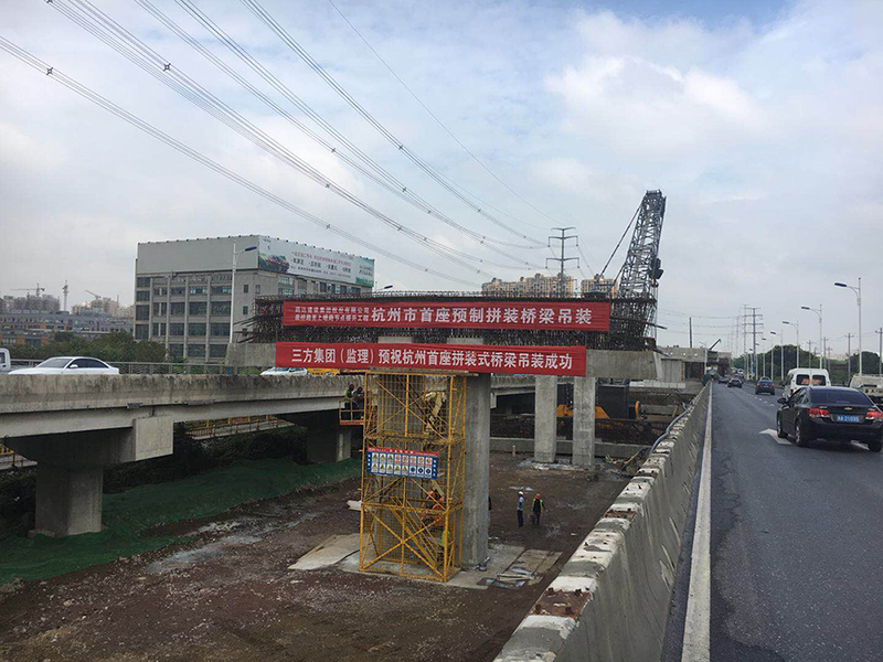 9月11日,杭州市首座城市预制拼装高架——康桥路至上塘路节点提升工程,开始预制拼装盖梁吊装工作。