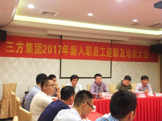 在杭州新街坊大酒店召开“三方集团2017年新入职员工迎新及培训大会”。会上,各位新员工依次作自我介绍,接着由董事长吴祖跃介绍集团组织机构及集团各位领导。会中,由董事长吴祖跃介绍集团成立初衷,发展历程及发展方向,着重就集团《管理手册》中的爱游戏手机登录入口、员工礼仪,员工离职制度、培训制度、廉政制度、问责制度以及各项福利等。最后,董事长吴祖跃向新员工提出几点要求,一要求全体员工以公司为家,努力学习技术知识,学习做人做事,忠于公司;二要严格执行集团“标准化管理”,提升个人层次;三在工作中,有任何困难、要求、问题,都及时提出,便于沟通,及时解决。