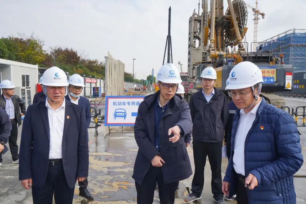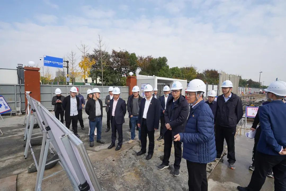 张坚一行先后来到集团监理的嘉兴至枫南市域铁路控制性节点工程(嘉兴南站)、嘉善至西塘市域铁路项目JL2标段施工现场,听取了两条市域铁路的项目概况和建设进展,并详细了解了嘉兴南站施工现场数字化建设情况和安全创新举措。