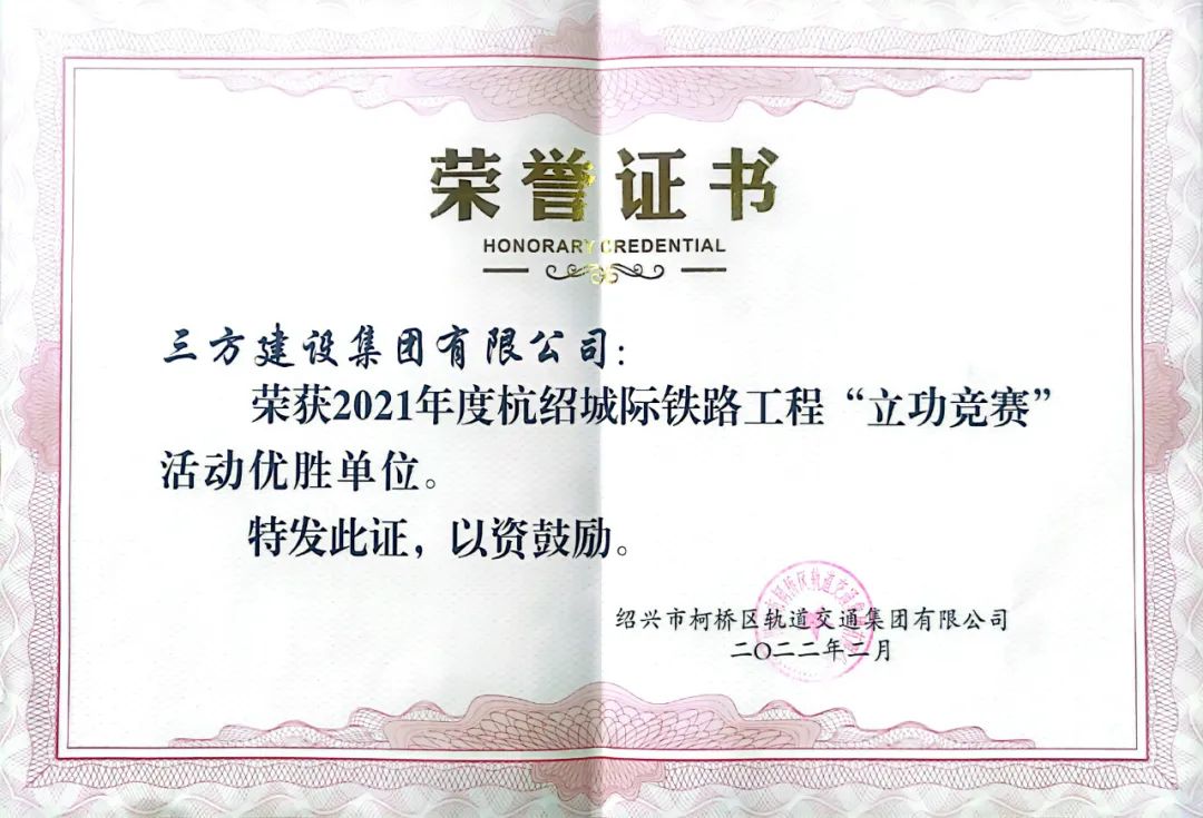 ●集团荣获2021年度杭绍城际铁路工程“立功竞赛”活动优胜单位。