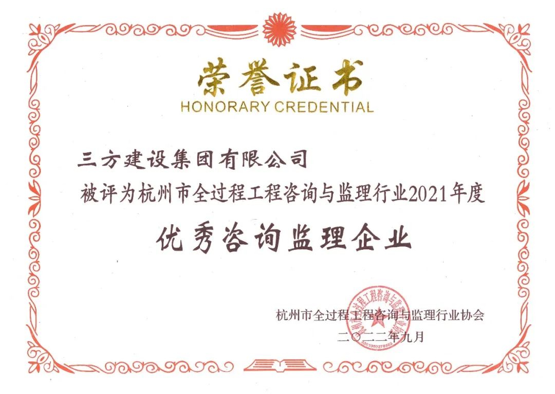 ●9月19日,集团荣获杭州市2021年度优秀咨询监理企业