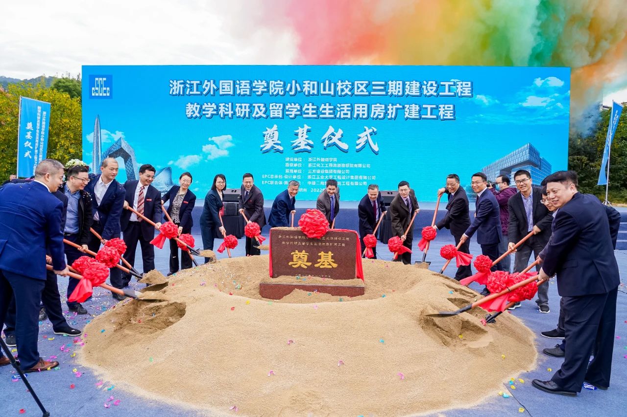 ●10月26日,浙外小和山校区三期建设工程教学科研及留学生生活用房扩建工程举行开工奠基仪式,董事长吴祖跃与校党政领导班子、出席嘉宾共同为项目开工培土奠基。