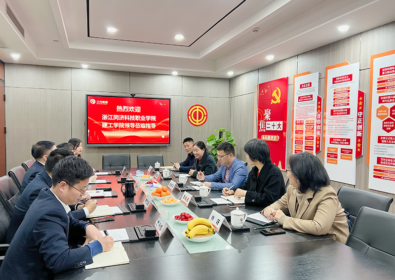 4月6日,浙江同济科技职业学院建工学院杨海平院长、蒋晓冬书记一行莅临我集团就校企合作进行走访交流。