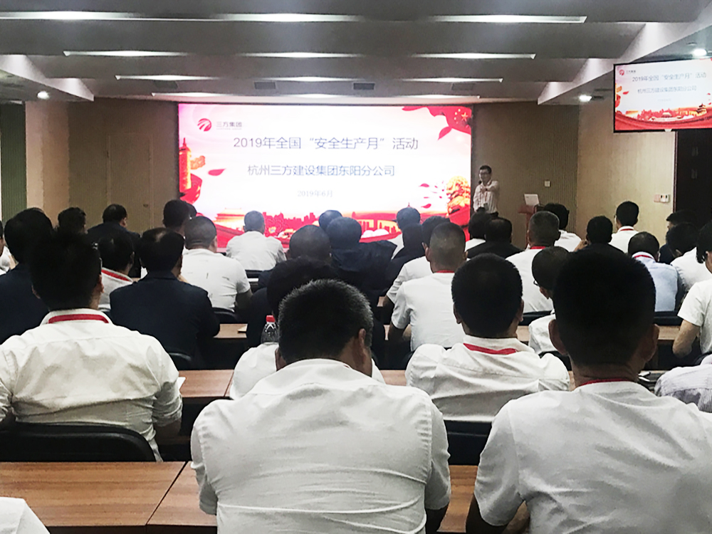 2019年6月13日下午,东阳分公司在多功能厅开展了以“防风险·除隐患·遏事故”为主题的安全生产月活动。本次活动由集团总裁助理、东阳分公司总经理张晓主持,分公司工程部、办公室全体人员及各在建项目监理部全体人员(除值班人员)参加。