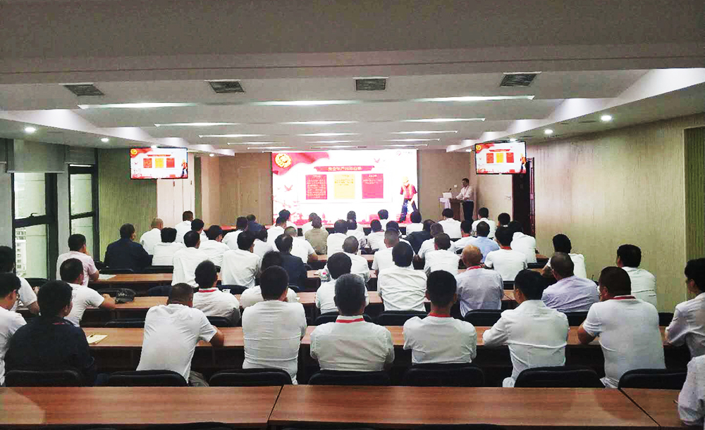 分公司总经理张晓根据安委办[2019]10号文件宣读了东阳分公司2019年度安全生产月的活动方案,工程部胡仲洪老师从全国安全生产月的由来、国家有关安全生产法律法规、安全生产知识、集团安全生产管理制度等对此次安全生产月主题进行了宣讲。