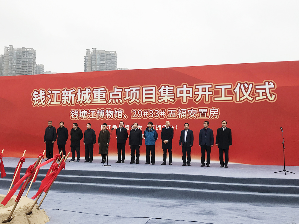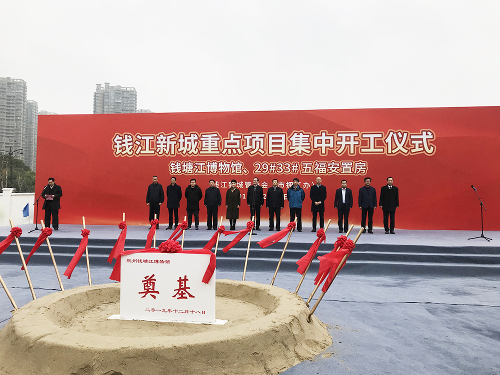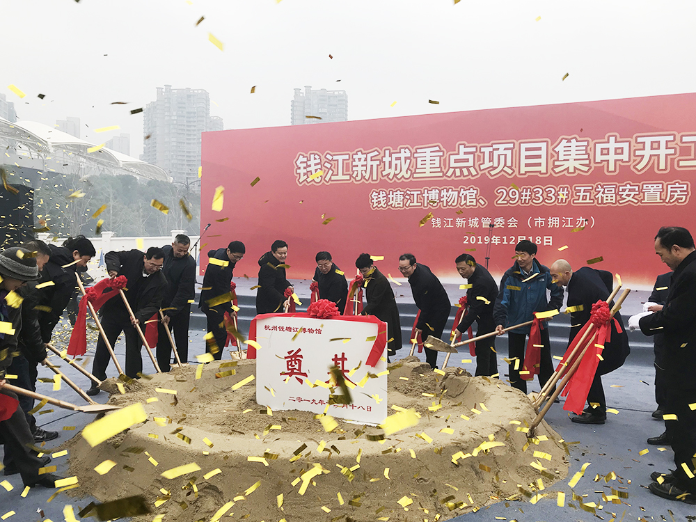 2019年12月18日上午,杭州钱江新城三大重点项目在杭州钱塘江博物馆工地联合举行开工仪式,杭州市、区级、建委、新城管委会相关领导及设计、施工、监理单位代表等260多人参加本次仪式,央视等媒体现场采访报道。