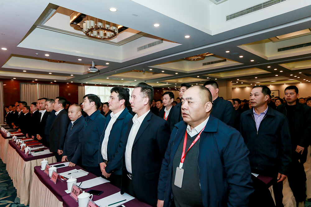 集团总裁夏少云主持本次工作会议,在全体人员嘹亮的国歌声后会议拉开帷幕。