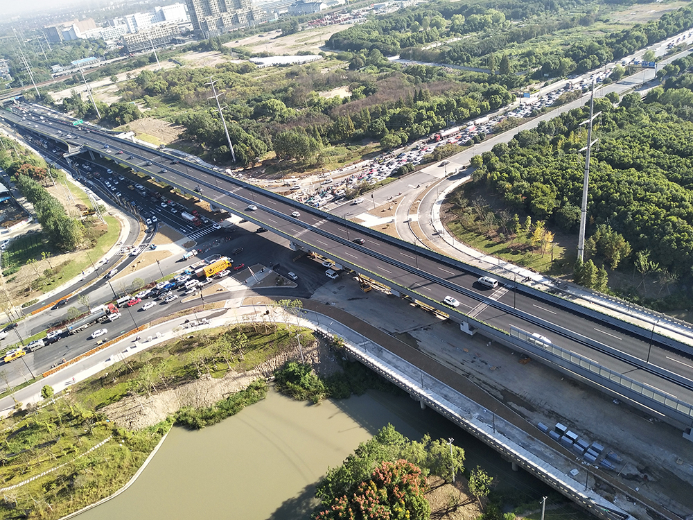 本工程位于余杭区良渚新城,包括高架、装配式高架桥、地面道路新建改建两部分。于2017年10月11日正式开工,其中主线高架于2019年1月31日正式开通,平行匝道、地面道路及地面桥梁工程在今年3月中旬第三次交改后开始全面施工,2019年12月31日全线完成施工任务,并于2020年1月3日初验通过。