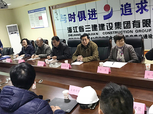 2018年1月25日8:30,省烟草局包诚善副总经理一行冒雪深入杭政储出【2011】61号地块商业金融业业务用房兼交通设施工地视察。