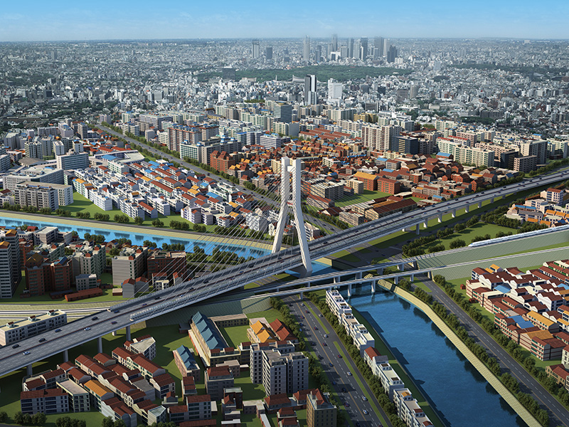主塔转体至垂直既有铁路线,距离铁路线最近距离约6.62m,再进行钢箱梁的施工;待桥梁结构施工完成后(包括挂索、配重),进行二次转体,将主桥转体至设计位置,跨越既有铁路线、龙津河、罗龙路和双洋路(跨度340米)。