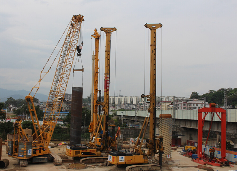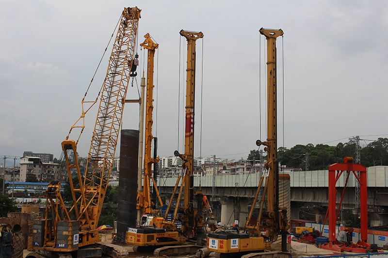 在主桥桩基础施工的过程中,采用价值3000多万元、德国进口设备宝峨(BG-460)旋挖钻。这台设备最长的钻杆达120m,这种级别的设备全国仅有2台,先进的机械和建造技术,为大桥施工提供了可靠的保障。