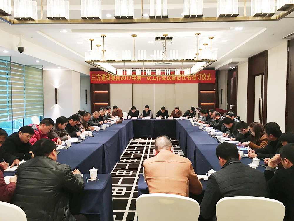 2017年2月8日下午2点,集团2017年第一次工作会议暨项目负责人签约仪式在明豪酒店3楼明聚厅召开,董事长吴祖跃、各级领导、分公司经理、各区域及项目负责人参加了本次会议。